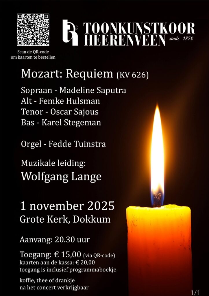 Het Requiem van Mozart met Toonkunstkoor Heerenveen onder leiding van Wolfgang Lange. Samen met sopraan Madeline Saputra, mezzosopraan Femke Hulsman